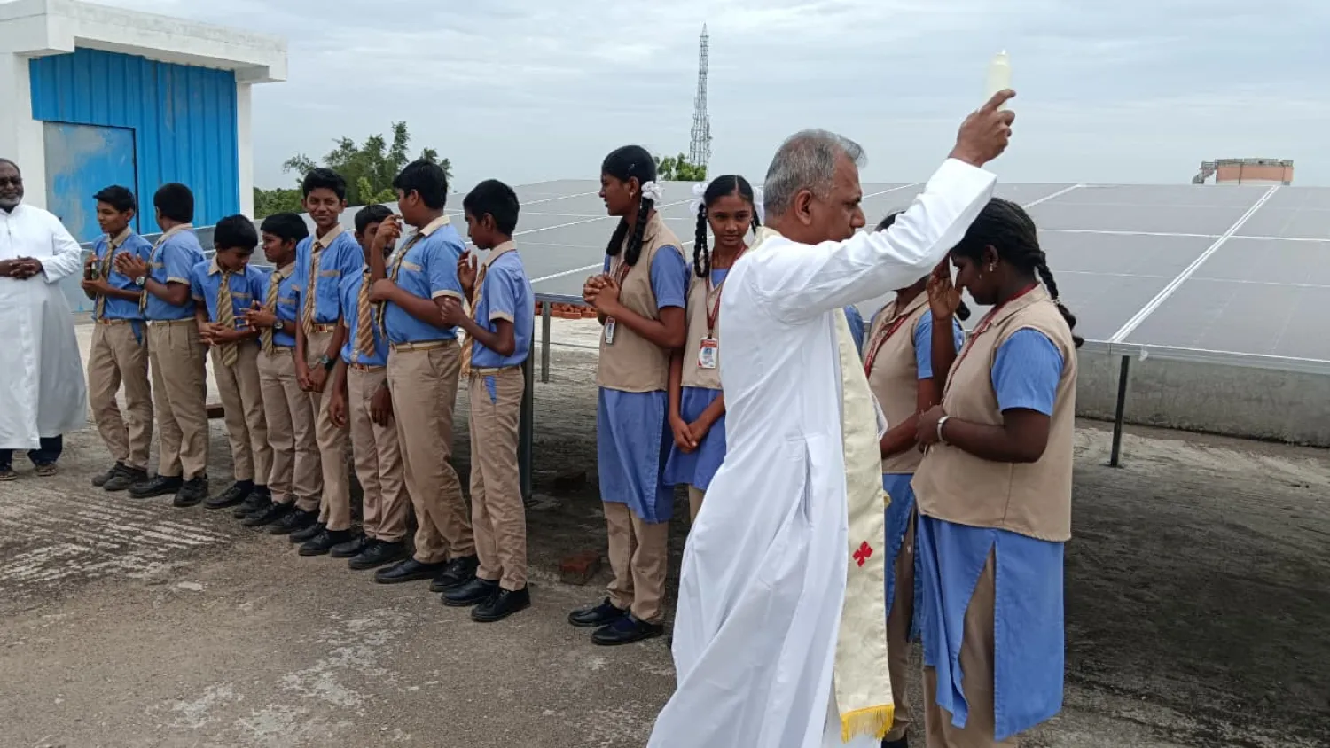 Don Bosco Higher Secundary School (DBHSS) is een grote middelbare school voor jongens. Ook in India zijn de energiekosten sterk gestegen. Zonne-uren zijn er in overvloed. Aangrenzend ligt een Frans Schlooz School of excellence. Een lagere school waar meer begaafde kinderen 2-talig onderwijs krijgen. Ook deze school profiteert van de zonne- energieopbrengst.